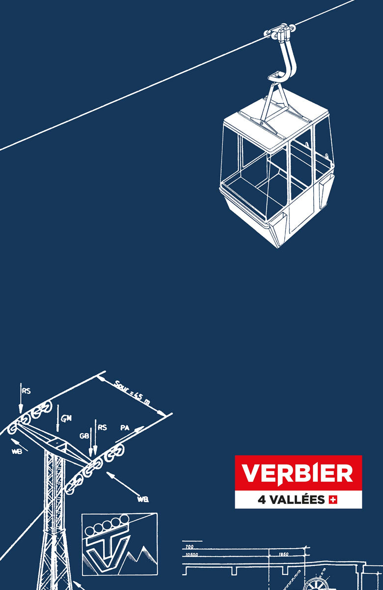 Blueprints are satisfying snapshots of design history. Local artist Sam Bruchez knows this, and arranged key parts of the Savoleyres gondola design on a rich blue cyanotype. Since 1970, these Giovanola parts spun and whirred to make Verbier the heavy-hitting resort it is today.