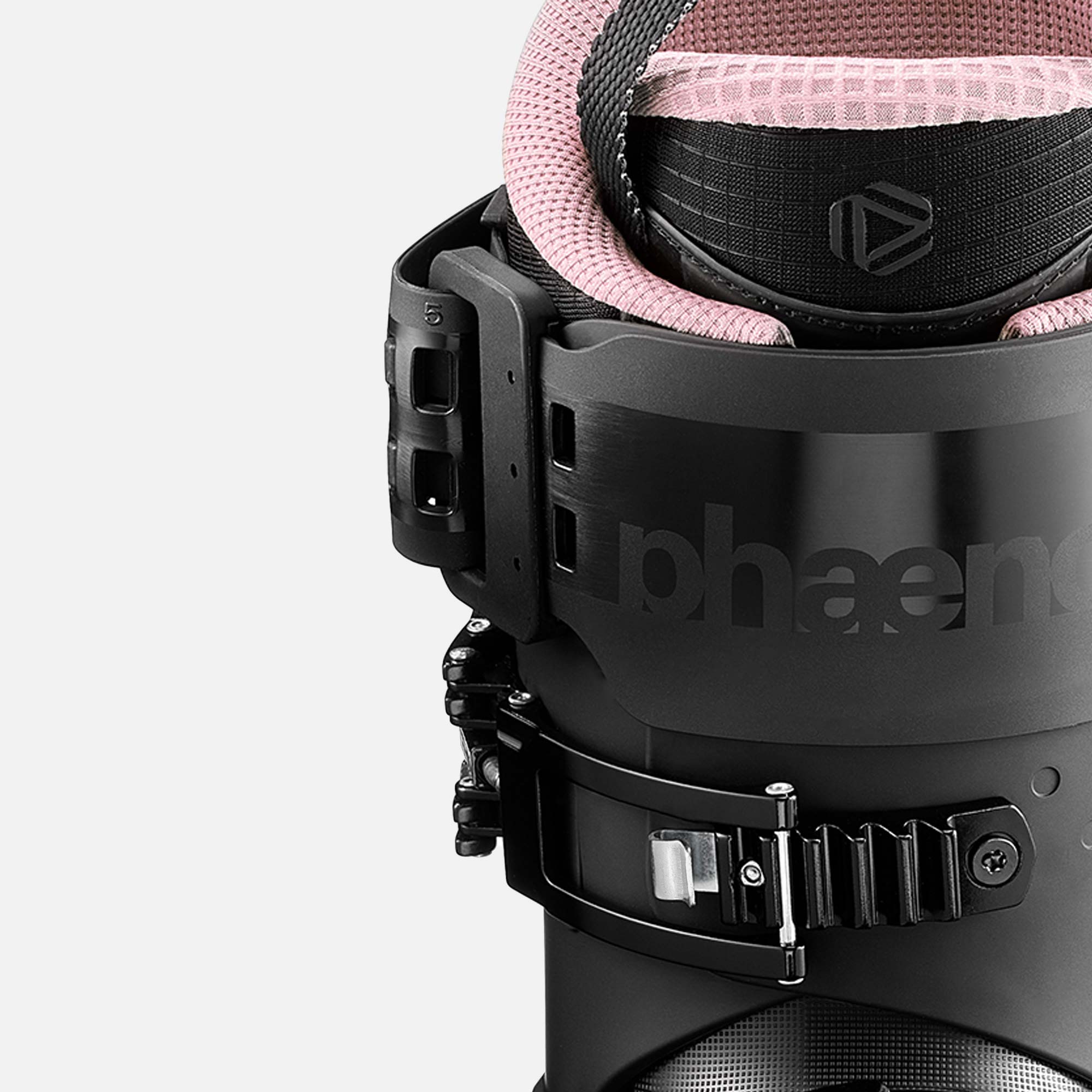 革新的なハイブリッドカブリオ/オーバーラップ構造は、両者の長所を組み合わせています:オーバーラップの密着感とエッジコントロール、そして3ピースのプログレッシブなフレックス。特許出願中のphaenomストラップと組み合わせることで、fr 01 100は反発力、衝撃吸収、そして卓越したフレックスコントロールを提供します。ストラップの弾力性がターン中に明確な反発力を生み出し、パワー伝達、ターン開始の精度、快適さ、予測可能性を向上させます。