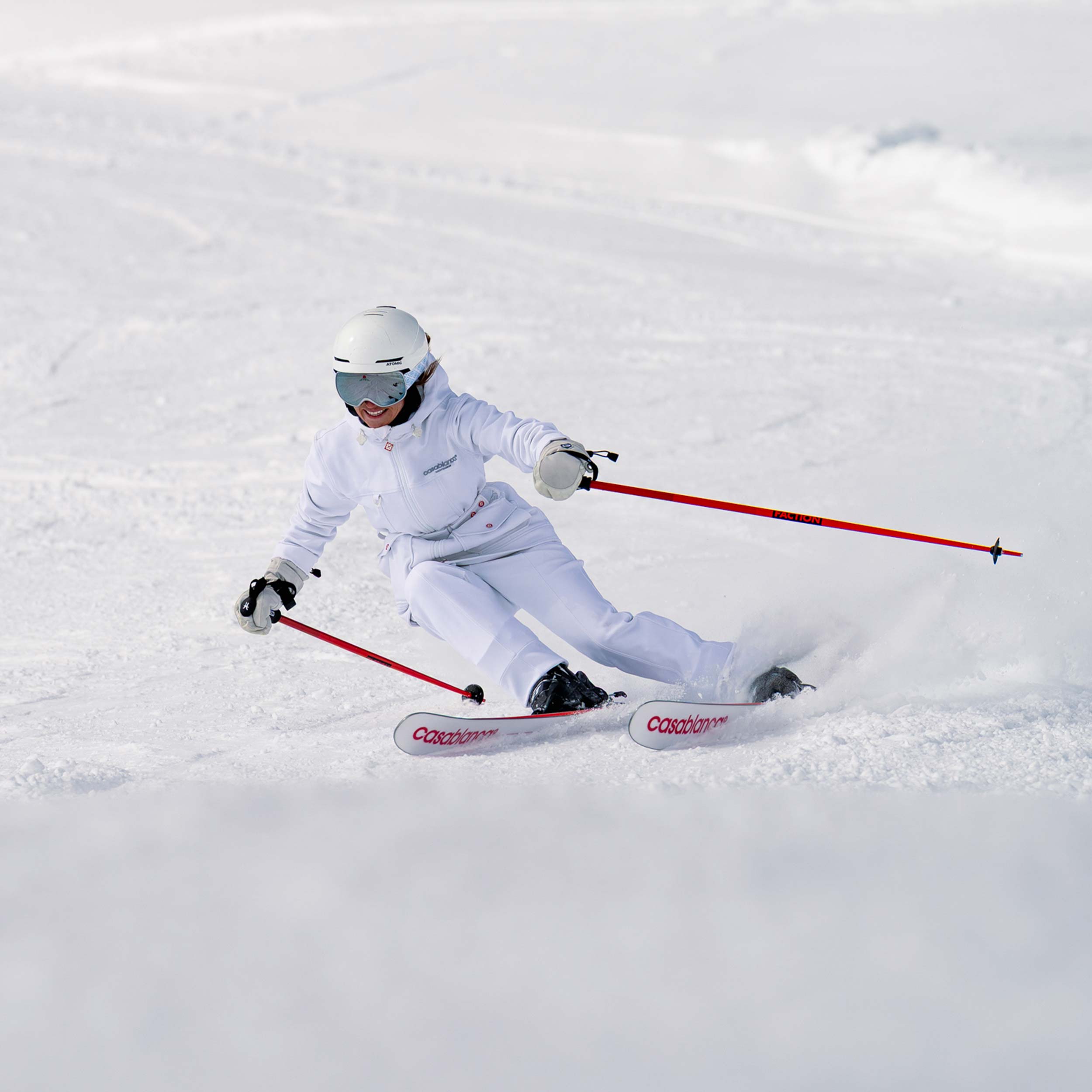 We came together with Casablanca Paris to create something that's completely singular. The Dancer 79 Casablanca unites Faction’s first pure piste ski with Casablanca’s luxurious modern après-sport aesthetic. Inspired by the sunbaked terracotta tones and crisp whites of Casablanca’s universe, this design is at home on this brand-new ski.