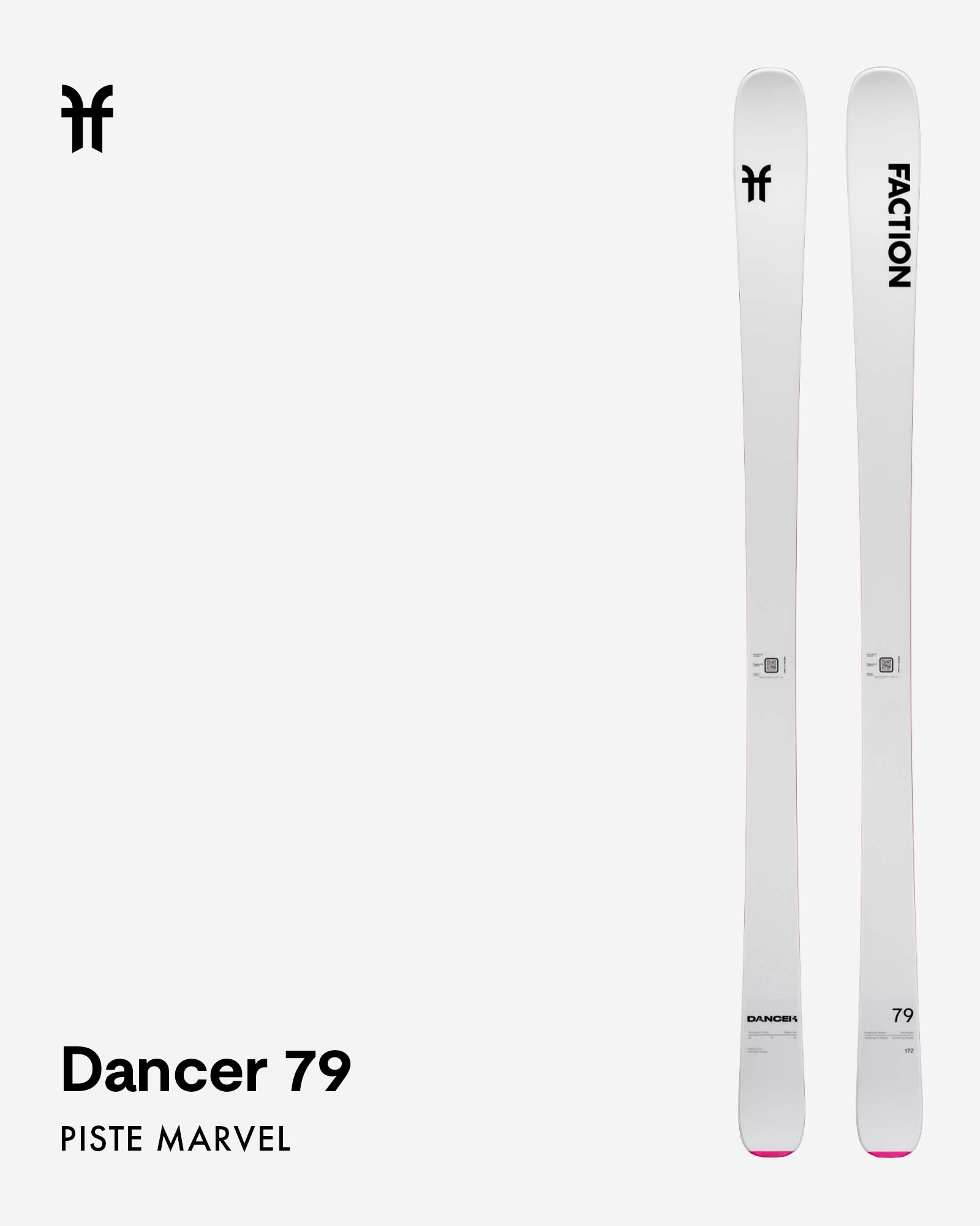 The all-new Dancer 79 is our first pure piste ski designed with one place in mind; 'la piste de dance'. This ski's home is in and around the resort's groomed runs, where each high-energy turn matters. The Dancer 79 features a progressive mix of minimal rocker, parabolic shape and razor-thin Titanal sheets for class-leading stability at speed and unrelenting grip on hardpack snow.